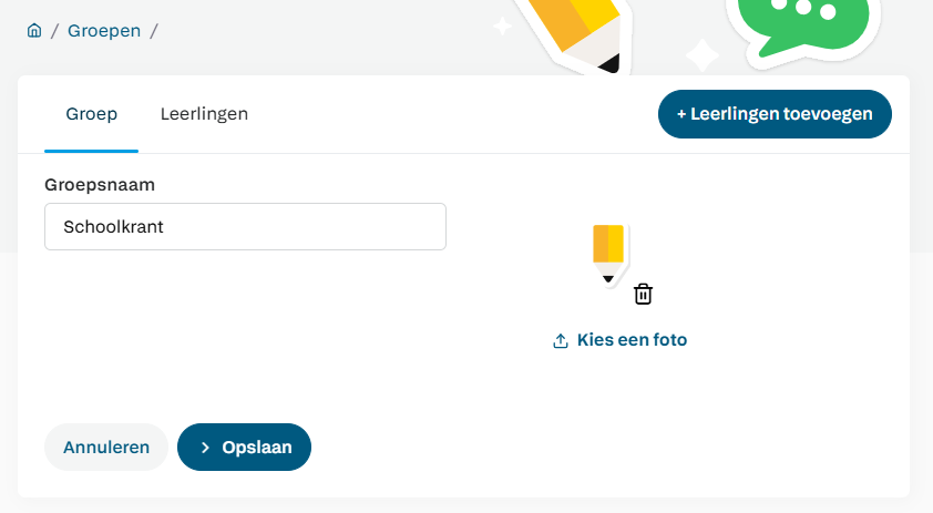 Optioneel kan je ook een afbeelding uploaden voor de projectgroep.