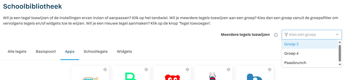 Vink Toon alleen toegewezen tegels aan Je ziet nu alle tegels die aan de groep zijn toegewezen.