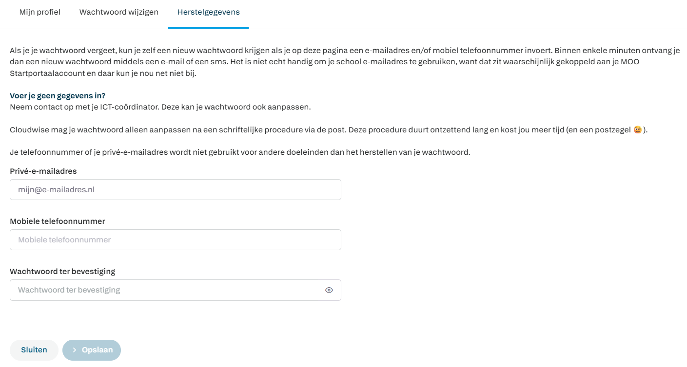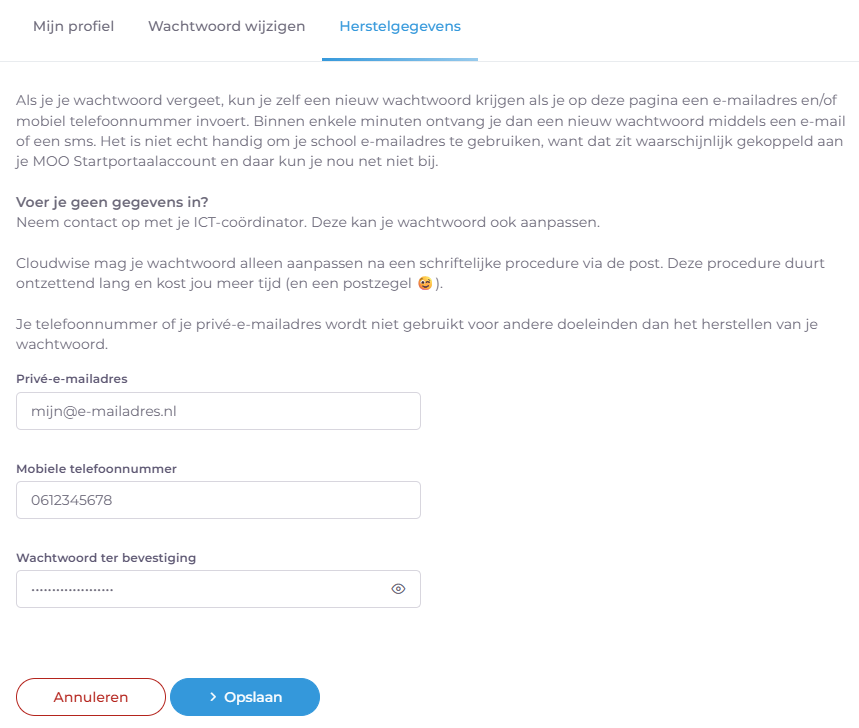 Stel herstelgegevens in, zodat je in de toekomst zelf je wachtwoord kan wijzigen.
