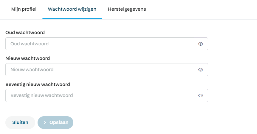 Klik nadat je het wachtwoord hebt gewijzigd ook op Herstelgegevens. Hier kan je de herstelgegevens controleren of invullen voor het geval je het wachtwoord een keer vergeet.